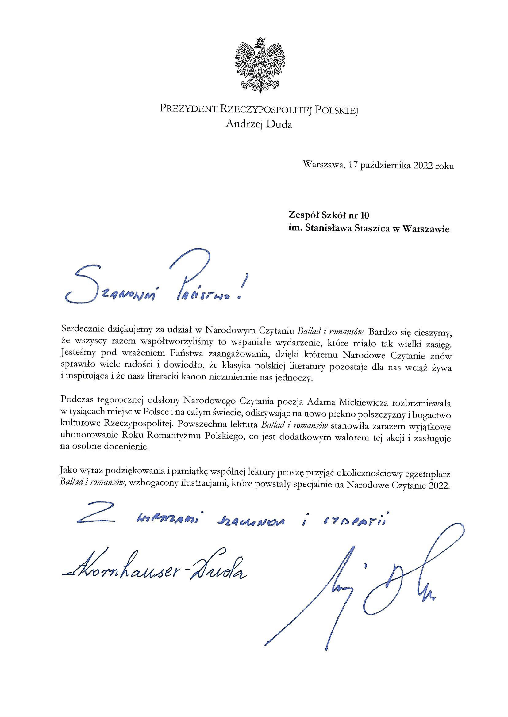 Dnia 02.09.2022 r. nasza Szkoła przystąpiła do finału ogólnopolskiej akcji Narodowego Czytania. Ponieważ trwa Rok Romantyzmu Polskiego, tym razem akcja przybliżała „Ballady i romanse” Adama…